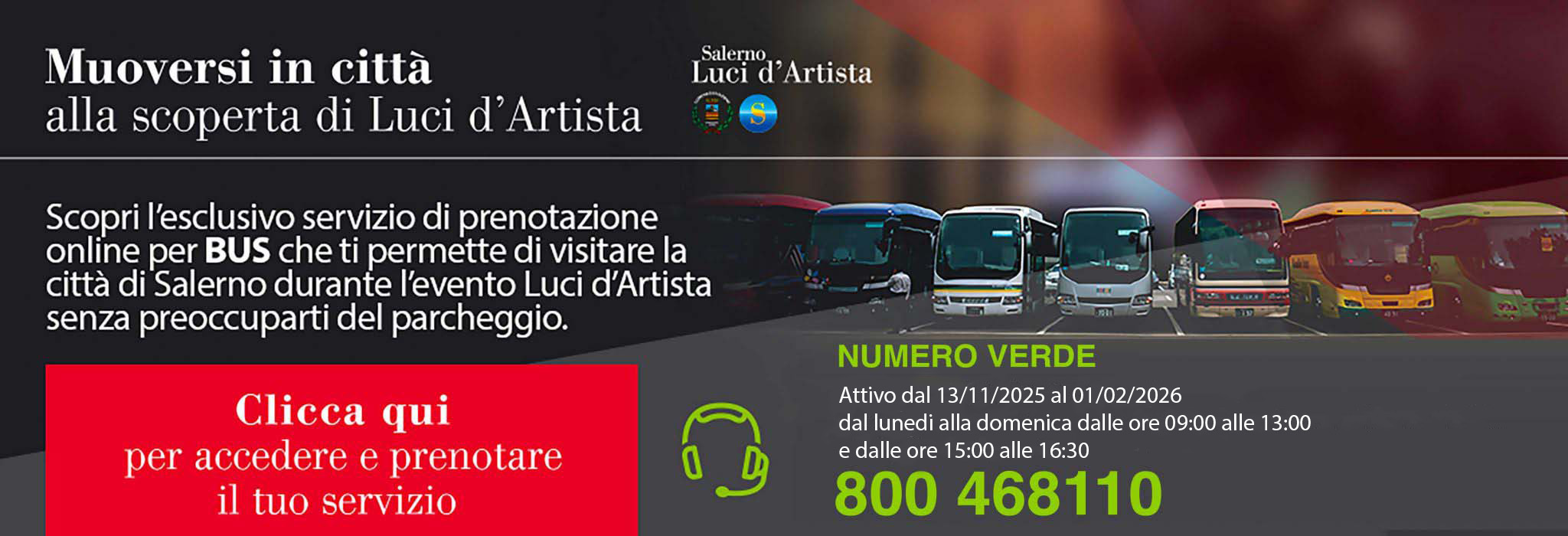 (ATTIVO DAL 11/11/2025 AL 01/02/2026 DAL LUNEDI ALLA DOMENICA DALLE ORE 09.00 ALLE ORE 13.00 E DALLE ORE 15.00 ALLE ORE 16.30).
